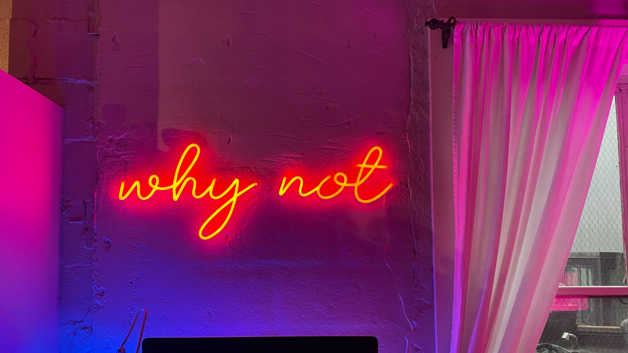 Forget bulky studio lights. Neon signs add an ambient glow that flatters skin tones and enhances the mood of content without extra equipment.